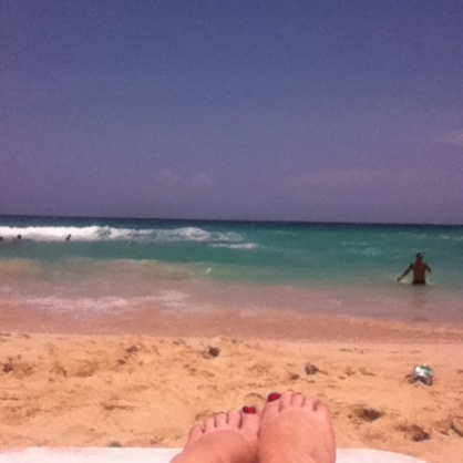 The next morning me and one of the other flight attendants hit the beach. Its about a 25 min cab ride away, and driving through old Havana is pretty interesting. We passed a lot of beautiful buildings and candy coloured cars. When we arrived at Santa Maria beach, which is a public beach, there was a huge mix of people there. The funniest thing to me was the little groups of people hanging out in the water holding a full bottle of rum. I was so zen-ed out in my beach chair, looks like the summer is off to a sunny start.